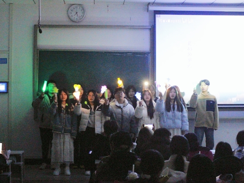节目展演中段,互动游戏环节如期而至,“听歌识曲”等趣味游戏一经推出,便点燃了现场师生的参与热情,大家踊跃举手、积极参与,在轻松欢乐的互动中拉近了彼此距离。与此同时,工作人员将事先准备好的蛋糕推出,各位老师共同见证这一时刻,并为同学们分发蛋糕。