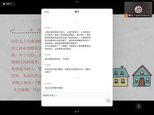 本次云支教活动期间小螺号实践队共开展了六次线上公开课,以红色革命及其精神、时代主旋律、学生人格品质的养成及实际行动为主题。在以《新时代——红色革命教育》为题的公开课中,主讲人谭莉进行了讲授,她分别从国民革命时期、土地革命时期、抗日战争时期和解放战争时期进行了讲解。同学们从这节课中学习了从国民革命时期至解放战争时期的红色革命历史,感受到了中国共产党人孕育壮大的红色革命精神。除此之外,还有以《忆历史,走进正义之战》、《凛冬散尽,星河长明》、《健康之心灵,青春之少年》、《你真的真的真的很不错》、《学做环保小卫士》为主题的公开课。小螺号实践队的队员们为同学们进行了细致讲解,同学们反响热烈。