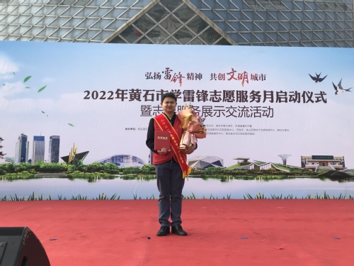 3月5日,在黄石市举办的“2022年学雷锋志愿服务月启动仪式暨志愿服务展示交流活动”中,我院研究生程辉同学被授予黄石市2021年度“十佳志愿者”荣誉称号。