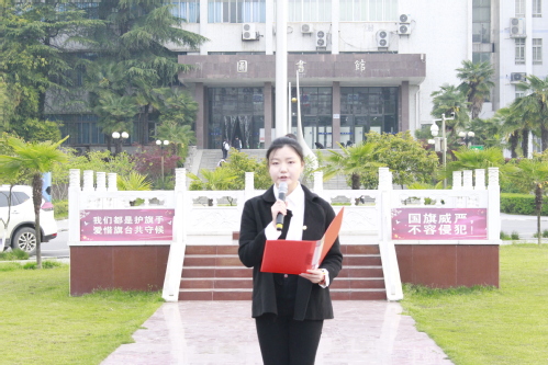 上午6时50分,升国旗仪式正式开始。国旗班护送国旗进场,鲜艳的五星红旗在朝阳和国歌声中冉冉升起。全体师生行注目礼,感受庄严的时刻。优秀学生代表万卓越同学作了“以青春之我,筑昌盛之国”的主题演讲。她号召青年学生大力发扬爱国主义精神,坚定“吾辈当自强”的理想信念,与时代同频共振,实现“小我”与“大我”的有机结合,将个人理想融入强国实践,努力为实现中华民族伟大复兴的中国梦书写绚丽人生篇章。