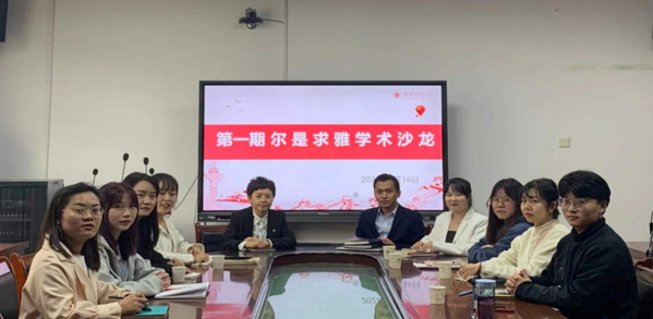 4月16日下午14:30,研究生导师刘学利和周英杰博士组织2020级和2021级8名研究生,在教育大楼1317举办了第一期尔是求雅学术沙龙活动。本次沙龙由孙艺琦同学主持,程静、李明杰做汇报,张明珠、郭浩彬负责点评,同学们相互交流、讨论,最后由两位导师指导与总结。