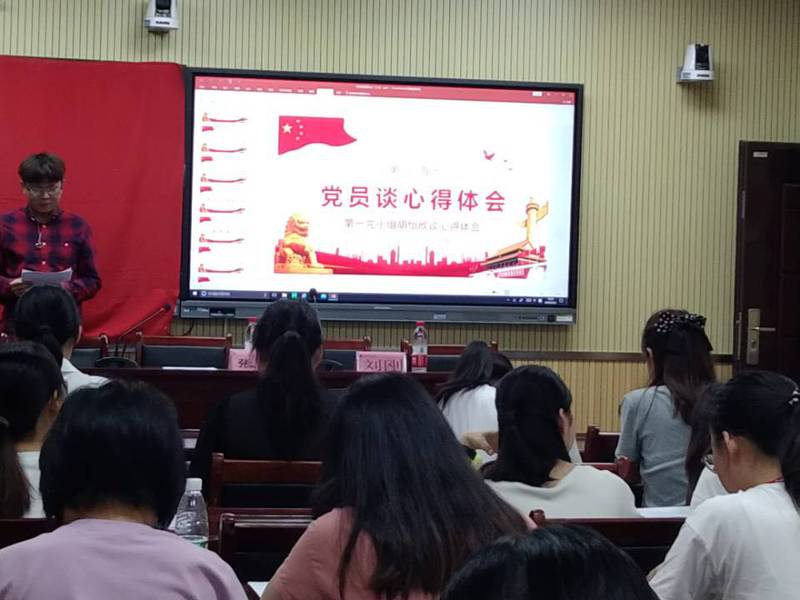 首先进行的是缴纳党费环节,随及是全体党员集体重温入党誓词、集体朗诵《党章》。接着,学生党员陈心悦带领大家深入学习习近平总书记在中国人民大学考察讲话精神、习近平总书记在庆祝建团一百周年大会上的讲话精神;学生党员高金凤带领学习劳模精神、劳动精神、工匠精神;学生党员卢冬玲领学五四运动与新时代的青年使命的相关内容。然后由第一党小组胡怡欣作为党员代表谈心得体会。
