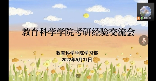 活动伊始,秦姗姗老师向同学们介绍了会议目的,四位考研成功的同学先后进行了经验分享。首先是已考取浙江师范大学教育学学术性研究生的陈晨,陈晨同学从政治、英语、教育学专业基础综合三个方面展开了自己的经验分享;随后是考取西南大学基础心理学研究生的丁汝,丁汝同学着重介绍了公共课与专业课复习的网课、资料与时间的合理安排;接着是考取华南师范大学小学教育专业研究生的曹芹芹,曹芹芹同学从专业简介、考研初心、考研历程、上岸心得四个方面分享了自己的宝贵经验,详细地介绍了学习英语的方法,并给出了实用的小建议;最后是考取中南民族大学心理健康教育专业研究生的蔡文静,蔡文静同学用结构图的形式直观地展现了择校、网课选择、时间管理三方面的内容,让参会的同学们清楚明晰地了解到相关方面的知识。经验分享结束后,参加线上会议的同学们对于考研提出了自己的疑惑,如怎样平衡实习与考研等等,四位同学针对不同的问题做出了相应的解答。最后,秦姗姗老师总结道,考研的同学应当未雨绸缪,利用好碎片化时间做好复习工作,同时祝愿同学们都能成功上岸。至此,本次会议圆满结束。