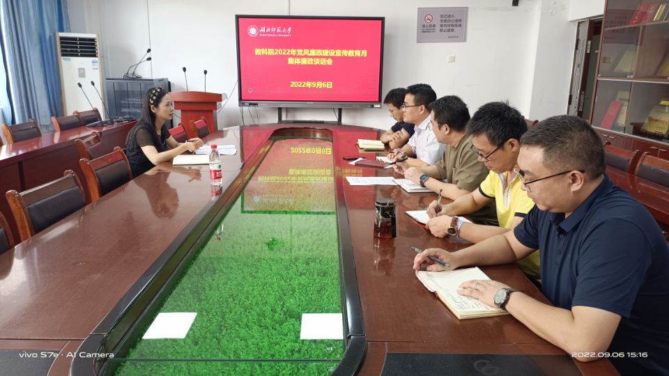 9月6日下午3点,校党委常委、副校长王赛玉莅临教科院1317A会议室参加党风廉政建设宣传教育月集体廉政谈话活动,活动由学院党总支书记徐明波主持,学院领导班子成员参加了本次活动。