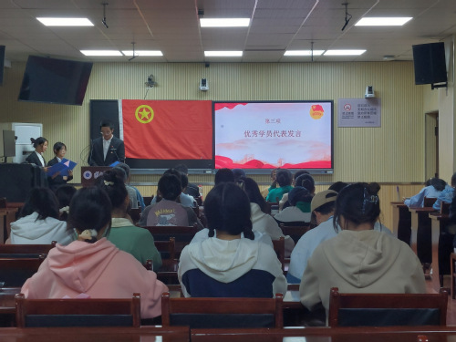 典礼伊始,主持人介绍了出席本次活动的嘉宾并宣布结业典礼正式开始。接着,全体起立,奏唱团歌。然后,王浩老师上台致辞,他对团校学员顺利结业表示热烈祝贺,并强调团校学员们要坚守初心,自信自立,积极投身于党的伟大事业中,勇担新时代复兴大任。随后,优秀学员代表苏琦上台发言,呼吁各位学员坚定理想信念,勤奋学习,成就青春。最后,王浩老师为优秀学员颁发荣誉证书,秦姗姗老师为学员代表颁发结业证书。至此,本次结业典礼圆满结束。