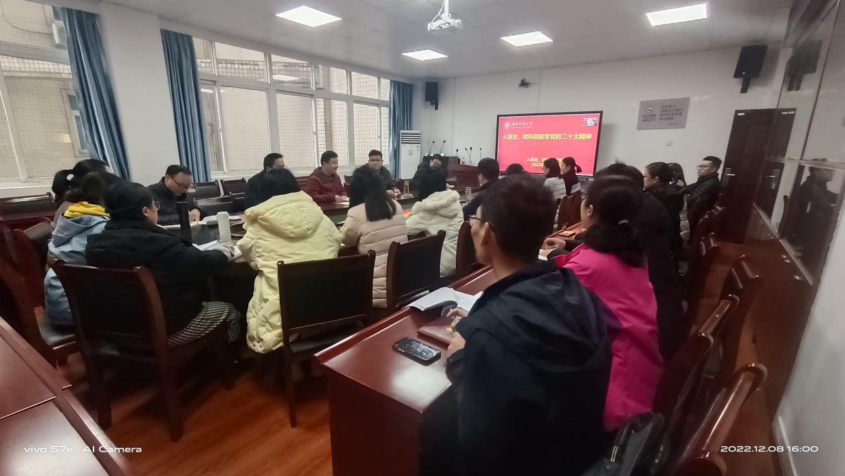 2022年12月8日下午,教科院教师党支部和机关第三党支部在教育大楼1317A会议室举行联学活动,专题学习了习近平总书记在中国共产党第二十次全国代表大会上所作报告中的部分内容。会议由教科院党总支书记徐明波主持,机关第三党支部和教科院教师党支部党员参加了会议。