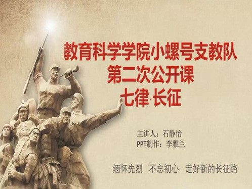 本次云支教活动期间,小螺号实践队主要围绕着红色革命精神、疫情防控、知识普及以及学生人格品质的养成这四大类,共开展六次线上公开课,其主题分别为《坚持党的全面领导》、《七律·长征》、《奥密克戎—你是什么株》、《与焦虑做朋友》、《劳动教育》、《消防安全》。其中,主讲人王意林以《坚持党的全面领导》为主题展开的讲授,让同学们在全面认识中国共产党执政地位的同时,坚定发挥党在中国特色社会主义建设进程中的核心作用不动摇。而主讲人石静怡则以《七律·长征》为主题带领大家回顾红军漫漫长征路,体会红军“万水千山只等闲”豪情壮志,感受长征精神作为当今时代前进的重要引擎,如何成为推动中国人民创新向前的伟大力量。