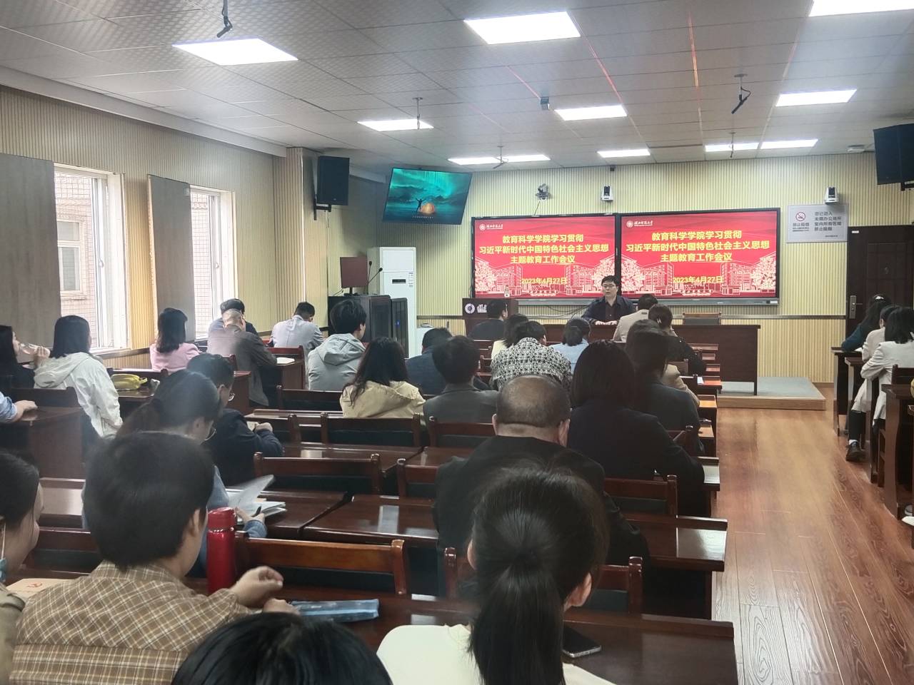 2023年4月27日下午,教科院在教育大楼1316A会议室召开了学习贯彻习近平新时代中国特色社会主义思想主题教育专题工作会议。会议由学院党委书记杨志丹主持,全体教职工参加了会议。