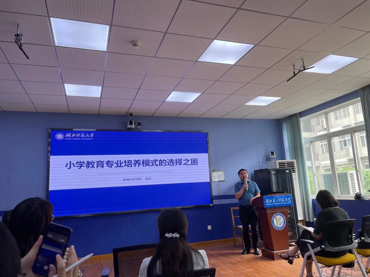 5月28日上午,第十届湖北省小学教育专业建设研讨会在湖北第二师范学院教师素质训练中心召开。本次会议的主题是“新文科背景下小学教育专业高质量发展”,来自湖北省教育学会小学教育专业委员会的24所成员高校相关学院领导、专业负责人、专业教师代表及学生近90人参会。崔波副院长作了题为《小学教育专业培养模式的选择之困》的主题发言,介绍了我院小学教育专业的发展历程和办学特色,分析了小学教师全科培养的政策导向和现实困境,提出在当前小学教师招录政策背景下实施分学科培养的设想,讨论了小学教育专业分学科培养中的课程设置和课程内容整合等问题,主题发言得到与会代表的高度肯定。