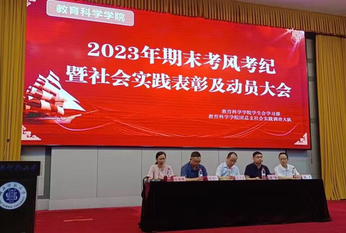 为加强考风考纪建设,营造诚信应考的氛围,同时鼓励学生积极参与暑期社会实践,yl23411集团于6月11日晚在教育大楼报告厅举行了2022-2023学年第二学期期末考风考纪暨社会实践表彰及动员大会。yl23411集团党委副书记刘广兵、副院长崔波、教务处副处长付光槐、团委书记王浩、辅导员秦姗姗及22级各班班主任出席本次会议。本次会议由辅导员刘丽娟主持。22级全体学生及学生代表参加了此次会议。