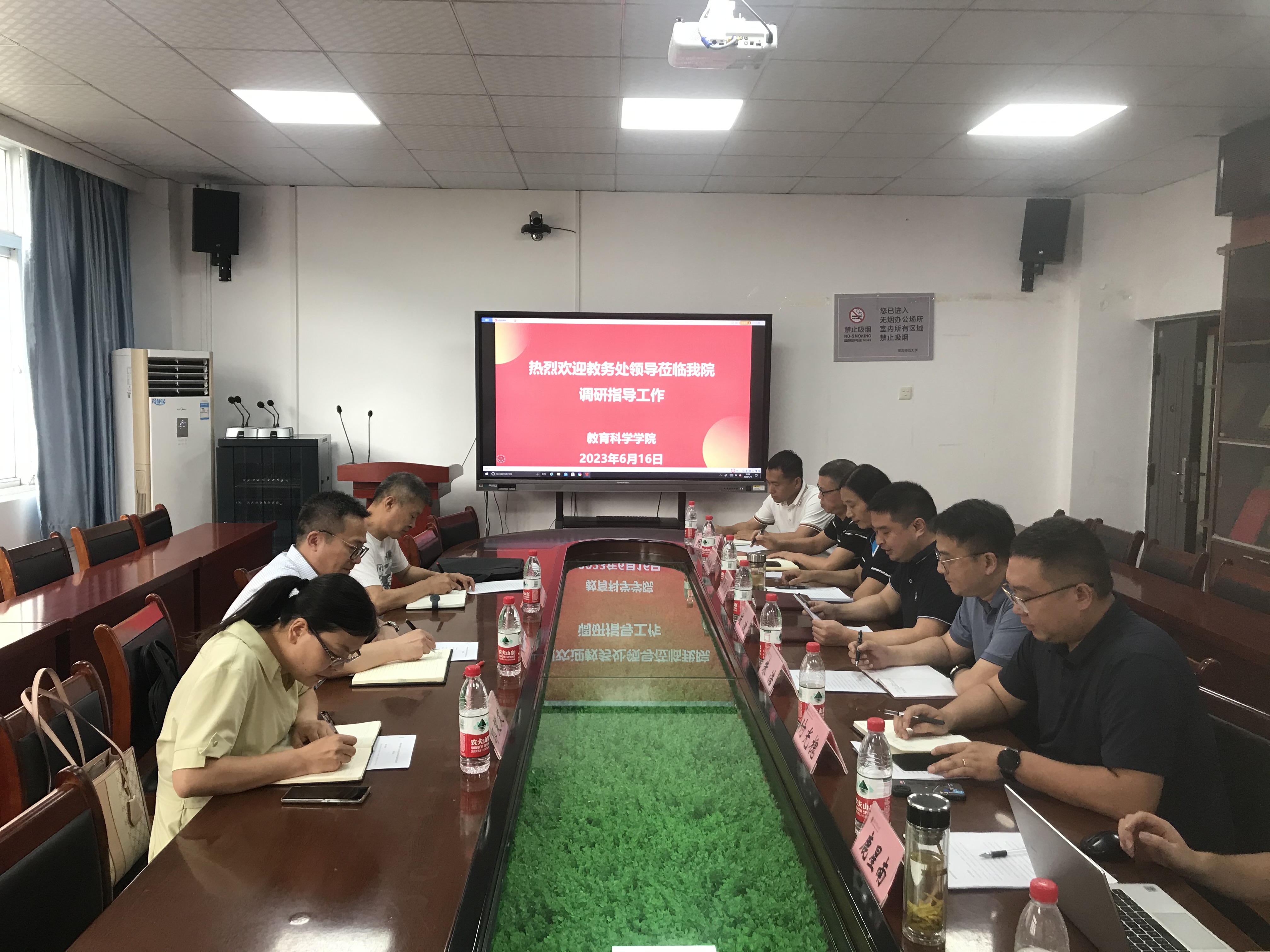 6月16日上午,教务处胡艳军处长、黄海军副处长、郭笑笑老师一行来我院调研一流本科专业建设和劳动教育课程建设情况。院长朱浩、副院长崔波、小学教育国家级一流本科专业建设点负责人张小菊、教育学省级一流本科专业建设点负责人付光槐及全体系主任参加调研会。会议由院长朱浩主持。