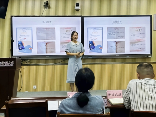 比赛共分为两个环节。首先,由四位选手依次上台结合生涯发展报告进行陈述和展示。随后,现场的评委老师结合选手陈述和现场表现进行提问并给予指正与建议。刘丽娟老师提醒就业赛道选手要以一个准就业者的姿态进行讲述,并将自己的实习经历与比赛内容相结合呈现出一定的针对性。伊力扎提老师强调参赛选手应注意仪态与着装问题,加强职业目标与规划的契合度。最后,根据各位选手的综合表现,确定比赛最终的校赛入围名单:杨雅舒、张晓蕾。