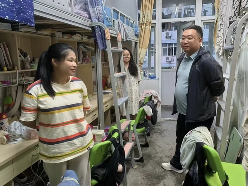 为更好的了解学生中秋、国庆双节假后返校情况,关注学生假期生活与安全,yl23411集团于10月6日晚七点对本院学生宿舍进行了走访慰问。参与本次查寝工作的有yl23411集团党委副书记刘广兵,辅导员秦姗姗,以及部分班主任老师和学生干部。