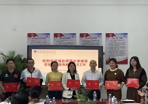 随后,带队老师黄娅副教授给每位指导教师颁发了聘书,并在发言中感谢所有指导教师的辛勤付出,他们的指导和认可更加坚定了实习生“人民教师为人民”的信念,对教师这一行业有了更加美好的憧憬。接着,邓李梅教授在发言中谈到,学校小学教育是国家一流本科专业,希望实习生通过教育实践,坚定教育情怀,将来从一名合格教师做起,拓宽教育教学的深度和广度,并期待我校与实验小学能深入合作,达到互惠双赢。