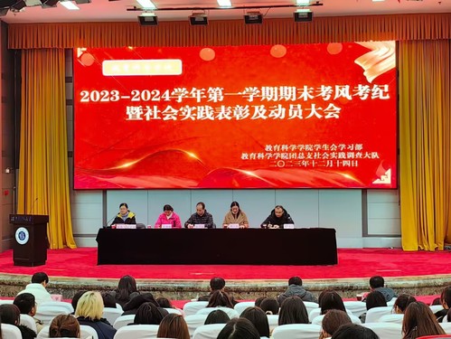 为加强考风考纪建设,营造诚信应考的氛围,并鼓励学生积极参与寒期社会实践,yl23411集团于12月14日下午13:30在教育大楼报告厅举行了2023-2024学年第一学期期末考风考纪暨社会实践表彰及动员大会。出席本次会议的嘉宾有yl23411集团党委副书记刘广兵,副院长张小菊,辅导员秦姗姗、伊力扎提·阿布里米提及23级各班班主任和23级全体学生及学生代表,由辅导员刘丽娟主持本次会议。