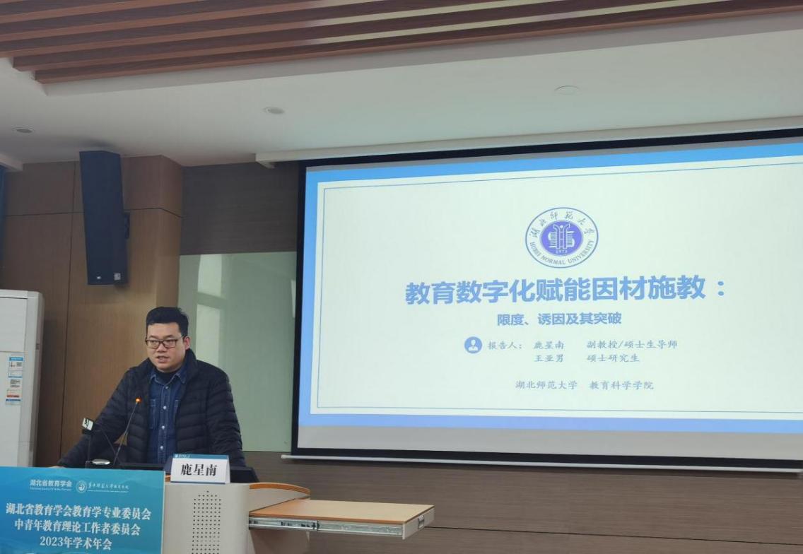 我院副院长崔波副教授担任专题报告呼应人。我院教师鹿星南副教授在专题报告环节作了“教育数字化赋能因材施教:限度、诱因及其突破”的报告。