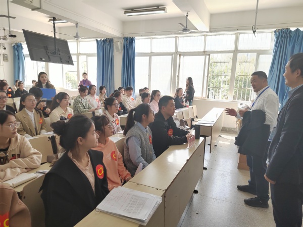 在检查过程中,雷儒金还与候场考生进行了亲切交流,鼓励考生们保持自信、冷静应对,充分展示自己的学术素养和综合能力,预祝考生们复试顺利。考生们对雷校长的热情鼓励表示感谢并报以热烈的掌声。
