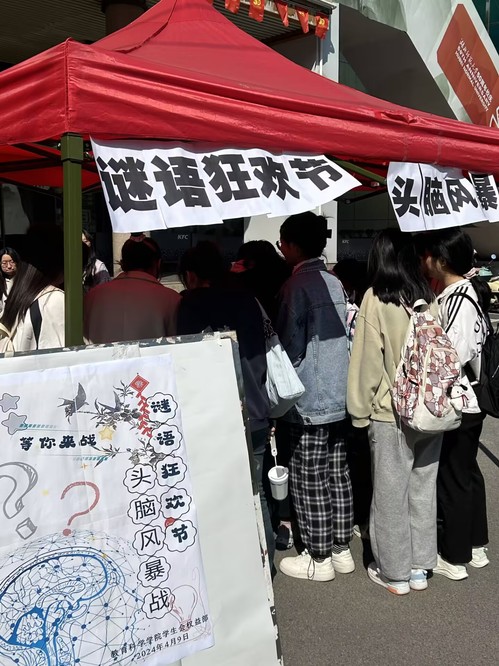 在大学的校园里,学生们充满了好奇心和求知欲。为了丰富校园文化生活,提高同学们的思维能力和逻辑推理能力,激发同学们的思考热情,让大家可以在轻松愉快的氛围中共同探索谜底,感受头脑风暴的乐趣。yl23411集团学生会权益部于4月9号在琼林苑门口开展此次“谜语狂欢:头脑风暴来袭”摆点活动。