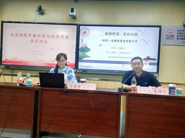 为了进一步加强国家一流本科课程建设,提升本科教学质量。5月21日,遵义师范学院教授杨晓平应邀来我院开展题为“做我所爱,爱我所做——国家一流课程建设经验分享”的学术报告会。报告会由教务处副处长付光槐主持,学院师生代表聆听了此次报告会。