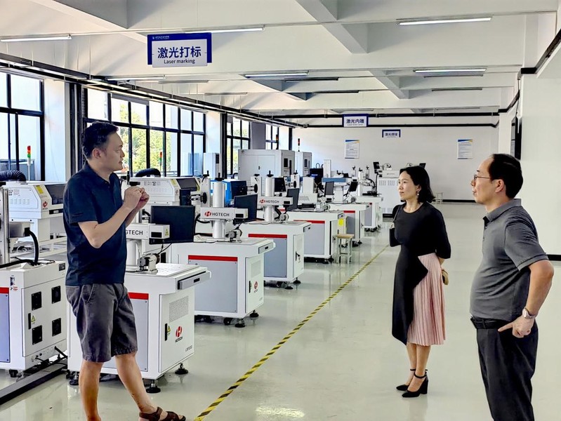 随后,调研组奔赴武汉华星的其他紧密型合作院校。分别在武汉职业技术学院光电与信息工程学院院长杨俊武和黄冈职业技术学院智能制造学院副院长金鑫的精心组织下参观了两校的光电芯片智能制造基地、集成电路虚拟仿真实训室、封装实训室、激光加工中心等一系列现代化教学设施设备,并就产教融合模式、成效和挑战开展了详细交流。