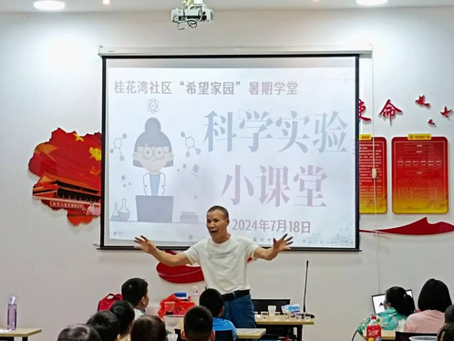 《3-6岁儿童学习与发展指南》指出:幼儿科学学习的核心是激发探究兴趣,体验探究过程,发展初步的探究能力。每个孩子对自然界的奇观满怀好奇与敬畏。因此在这个充满活力的暑期,yl23411集团小螺号实践队携手桂花湾社区党群服务中心,共同开启了一场别开生面的科学探索之旅。开展了一堂以“科学实验小课堂,助力儿童大成长”为主题的趣味科学实验课,不仅点燃了同学们的科学好奇心,更激发了探索未知的热情。