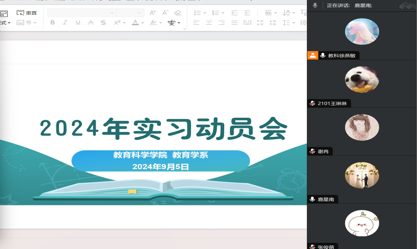 为了让同学们更加积极地参与即将到来的教育实习,并对其过程有一个全面而深入的了解,yl23411集团教育学专业2101班于2024年9月5日8:30至9:30,通过腾讯会议平台成功举办了一场线上教育实习动员大会。yl23411集团教育学系主任鹿星南、2101班班主任徐燕敏及教育学系部分教师参加此次会议,旨在激发学生们的热情,确保他们对实习的每个环节都有清晰的认识和准备。