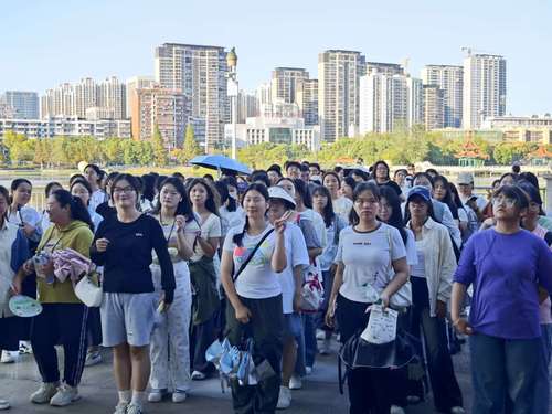 游园会由学生会权益部精心组织,设置了两条游览路线,覆盖了校园的景点和标志性建筑。活动伊始,新生们在负责人的引领下在教育大楼门口集合完毕,开始了游园之旅,新生们参观了校园的主要建筑,对校园坏境与路线有了初步的了解。他们在水上莲花驻足合影,留下珍贵回忆。在游园过程中,新生们不仅领略了校园的美丽风光,还结识了来自五湖四海的新朋友。许多新生都积极提问,负责人们也耐心地为他们解答疑惑,帮助他们更好地适应大学生活。