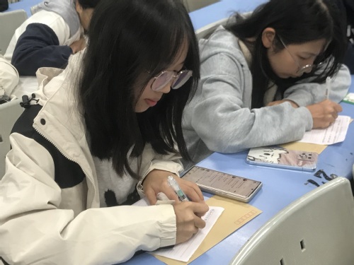 活动伊始,郭雨佳、李思毅、张璐为同学们介绍了活动主题和活动内容,引导同学们记录当下,展望未来。接着,在心理部负责人与工作人员的指导下,各班心理委员为同学们分发信封和信纸,同学们积极配合,纷纷落笔,写下对大学四年生活的合理规划和美好祝愿,顺利完成了本次书信活动。活动结束后,由各班心委将书信收集起来,并交给心理部统一存放。