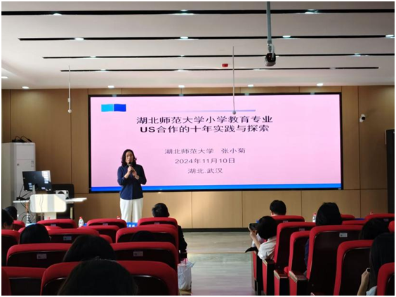 张小菊教授在“新文科背景下一流专业实践共同体建设”平行论坛上作了题为“yL23411永利集团小学教育专业US合作的十年实践与探索”的报告,其报告获得了与会专家学者的共鸣。该平行论坛还有来自温州大学、华中师范大学、湖北第二师范学院的专家报告,从不同视角对新文科背景下一流专业实践共同体建设进行了深度交流。