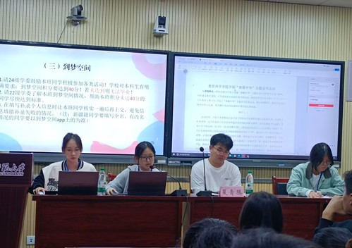 会议伊始,主持人赖家宜向大家介绍了本次会议的嘉宾以及流程。随后,王瑞霜为大家讲解通讯稿的写作规范,从格式要求和内容要求两个方面进行阐述。与此同时,陈俣烨为大家进行现场操作演示。在日常工作内容中,王瑞霜向各班负责人指出了在早自习、教学日志、到梦空间和消息通知等工作方面的注意事项。接着,学习部负责人为各班负责人对本次会议内容的提问进行现场答疑。最后,夏青腾再次向各位负责人强调了第二课堂的重要性和必要性,提醒各班负责人注意学生工作的及时性。鼓励各班负责人能够积极发挥引领作用,落实学生工作,与老师积极交流,共同为同学们塑造更好的校园氛围。会议结束,赖家宜再次对夏老师的莅临和各位负责人的到来表示感谢。