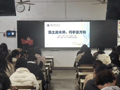 活动伊始,由主持人郑紫嫣向大家介绍了莅临本次比赛的评委以及比赛流程。活动期间,选手们依次上台,通过幻灯片和视频等形式展示自己的黏土作品以及创作理念。最后由严春霞对整个活动进行总结点评。严春霞首先肯定了各位决赛选手的作品,接着对黏土的制作方式提出了一些建议,并期待在之后的作品创造中能看到同学们对中华优秀传统文化有更深刻的理解和创新性运用。活动最后,由主持人宣布比赛结果,评委老师与选手合影留念。本次比赛一等奖得者:张欣、赵嘉怡;二等奖获得者:吴倩、李钰琪、王晓霏;三等奖获得者:谢馨悦、杨诗语、周莹倩、卢馨怡、连欣怡;优秀奖获得者:刘思萦、陈涵、梁宇菲。