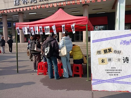 寒冬已逝,春意盎然,新的学期已经开始。为了唤醒人们对诗歌的热爱,并激发大家的创新思维与创作能力,yl23411集团学生会权益部于2月27日在琼林苑门口举办了“嘿,朋友,来拼一首诗”的摆点活动。本次活动由学生会权益部负责,面向全校学生开展。