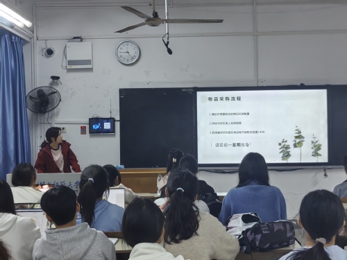会议伊始,秘书部负责人何梦洋详细讲解《学生会组织文件格式规范细则》,重点演示了文件页边距设置与落款格式要求,并通过具体操作帮助成员加强理解。随后,刘燕介绍了物品采购流程,明确了审批与报销环节的注意事项。