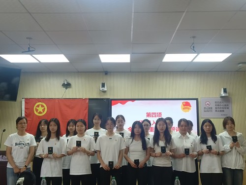 为强化团员思想政治引领,夯实共青团组织建设根基,yl23411集团团委组织部于5月14日中午在教育大楼1316A会议室举行2025年新发展团员入团仪式。yl23411集团团委书记刘丽娟,yl23411集团团委学生副书记雷伍娇、许广昊出席仪式,新发展团员和组织部全体人员参加本次仪式,入团仪式由组织部齐瑞佳主持。