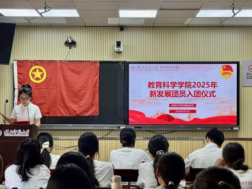 仪式在雄壮的《光荣啊,中国共青团》团歌声中正式开始。伴着鲜艳的共青团旗帜,全体与会人员肃立注目共同奏唱团歌。首先由许广昊宣读了yl23411集团2025年新发展团员名单,16名青年光荣加入中国共产主义青年团。学院团委书记刘丽娟为新团员颁发团员证并佩戴团徽。闪耀的证明与徽章承载着光荣的身份,更寄托着“党有号召、团有行动”使命的传承。紧接着,全体新发展团员在领誓人齐瑞佳带领下,面向团旗高举右拳庄严宣誓:“我志愿加入中国共产主义青年团,坚决拥护中国共产党的领导……”铿锵有力的誓言掷地有声,展现了yl23411集团青年矢志不渝跟党走的坚定信念。宣誓结束后,新发展团员代表刘姿姿发言,表达了对团组织的向往和为团旗增辉的决心,将在以后的学习生活中用实际行动践行团员的担当。最后,优秀团员代表雷伍娇向新发展团员表示热烈祝贺,并对他们提出殷切期望,希望大家牢记入团初心,以团员标准严格要求自己,努力学习、勇担使命,用实际行动践行“请党放心,强国有我”的青春誓言。