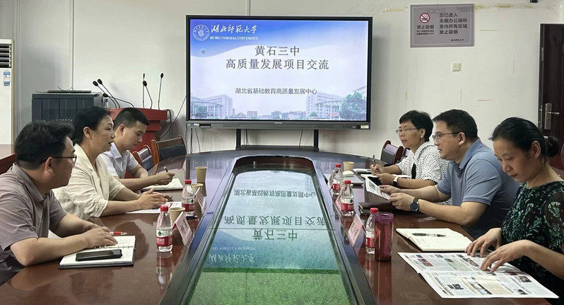 会议伊始,黄石三中党委书记周燕霞详细介绍了学校的发展成果,并期待依托湖北省基础教育高质量发展中心的专业团队,通过科研来找到学校高质量发展的密码,并在三年内从特色高中试点校晋级为示范校。同时,黄石三中校长杨昊也希望通过三年创建,能够以省级课题为支撑,提高教师科研能力,解决教师就学科讲学科、缺乏科研视角的问题。