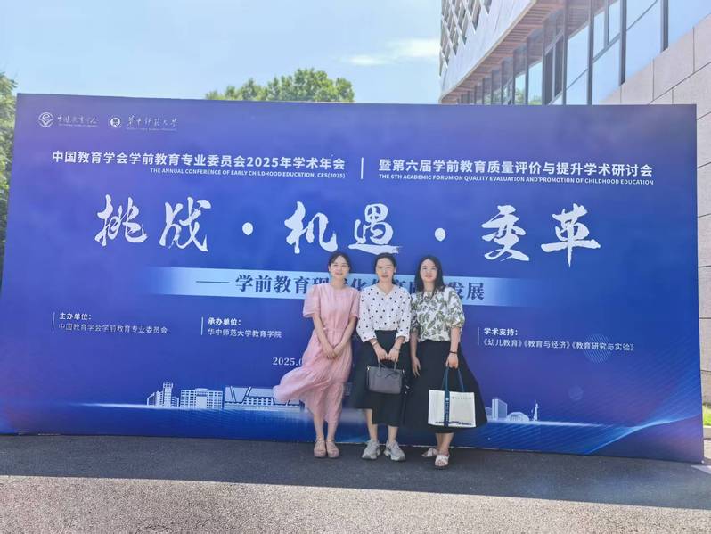 6月14-16日,由中国教育学会学前教育专业委员会主办、华中师范大学教育学院承办,并得到《幼儿教育》杂志社、《教育与经济》杂志社、《教育研究与实验》杂志社学术支持的“中国教育学会学前教育专业委员会2025年学术年会暨第六届学前教育质量评价与提升学术研讨会”在武汉华中师范大学成功举办。本次会议以“挑战·机遇·变革—学前教育现代化与高质量发展”为主题,来自国内外学前教育领域的知名专家学者、一线实践工作者及管理者400余人参会。我院学前教育专业何灿、李艳苹、王冲三位老师应邀参加了此次学术盛会。