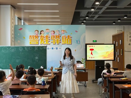 为点燃少年儿童的艺术创想火花,厚植红色基因与爱国情怀,7月22日,yl23411集团阳光之下实践队在警娃驿站开展“圆的联想画”绘画课与“红领巾小小讲解员”德育课。志愿者夏佳怡以画笔为媒激活想象,肖嘉以红领巾为桥传承精神,带领孩子们在艺术与德育的滋养中收获成长。