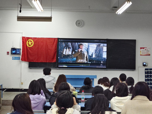 活动伊始,由主持人为本次活动进行简单介绍。电影《志愿军:雄兵出击》作为纪念抗美援朝战争胜利70周年的献礼之作,以全景式叙事展现了1950年志愿军入朝作战的历史背景与关键战役。影片通过领袖决策、战场厮杀、外交博弈等多条线索,生动刻画了从将帅到普通战士的群像——既有38军在松骨峰的浴血坚守,也有新兵在战火中的成长蜕变,更有中国代表团在联合国大会上的正义发声,让大家直观感受到“抗美援朝,保家卫国”的时代分量。随后,在观影过程中,学员们被志愿军战士在装备悬殊的困境下,以血肉之躯守护家国的场景深深触动,不少人神情凝重,内心久久不能平静。当看到影片中“我们把仗打了,后代就不用打了”的台词时,现场更是陷入沉思,深刻体会到今日和平的来之不易。最后,该影片使学员们在历史与现实的碰撞中深化了对爱国主义与革命英雄主义精神的理解,进一步坚定了理想信念。