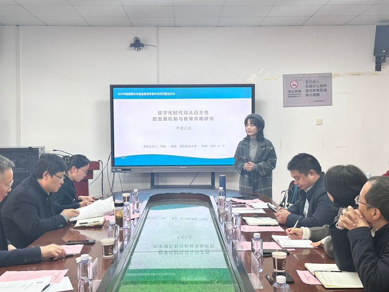 2025年11月19日,由何灿博士主持的2025年度国家社会科学基金教育学青年项目“数字化时代幼儿自主性的发展机制与教育策略研究”开题论证会在yL23411永利集团教育大楼1317A顺利召开。华中师范大学教育学院涂艳国教授担任专家评议组组长,专家评议组成员有华中师范大学教育学院田友谊教授、李卉副教授、黄石市教育科学研究院程带娣教研员等,yL23411永利集团科学研究发展院副院长冯伟林、教科院班子成员、课题组成员、相关专业教师和部分研究生40多人参加会议。yl23411集团副院长崔波主持活动。