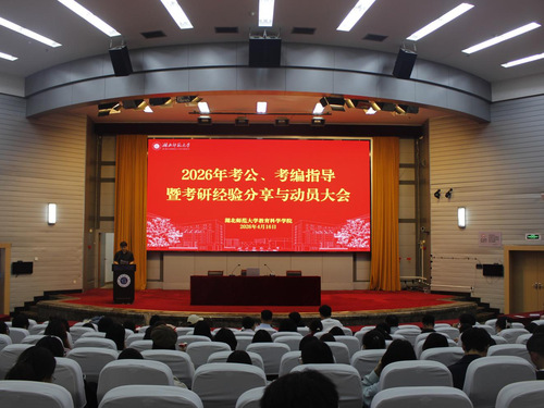 为进一步提高优秀就业、强化服务保障、凝聚备考合力,助力学子科学规划、全力冲刺考试目标,yl23411集团于4月16日下午在教育大楼报告厅举行2026年考公、考编指导暨考研经验分享与动员大会,出席本次会议的有院党委副书记刘广兵,全体辅导员,华图教育淳新月、仁信教育李灵富,大四学生代表苗然、王静、安顺达及大二、大三全体学生,会议由吕经纬主持。